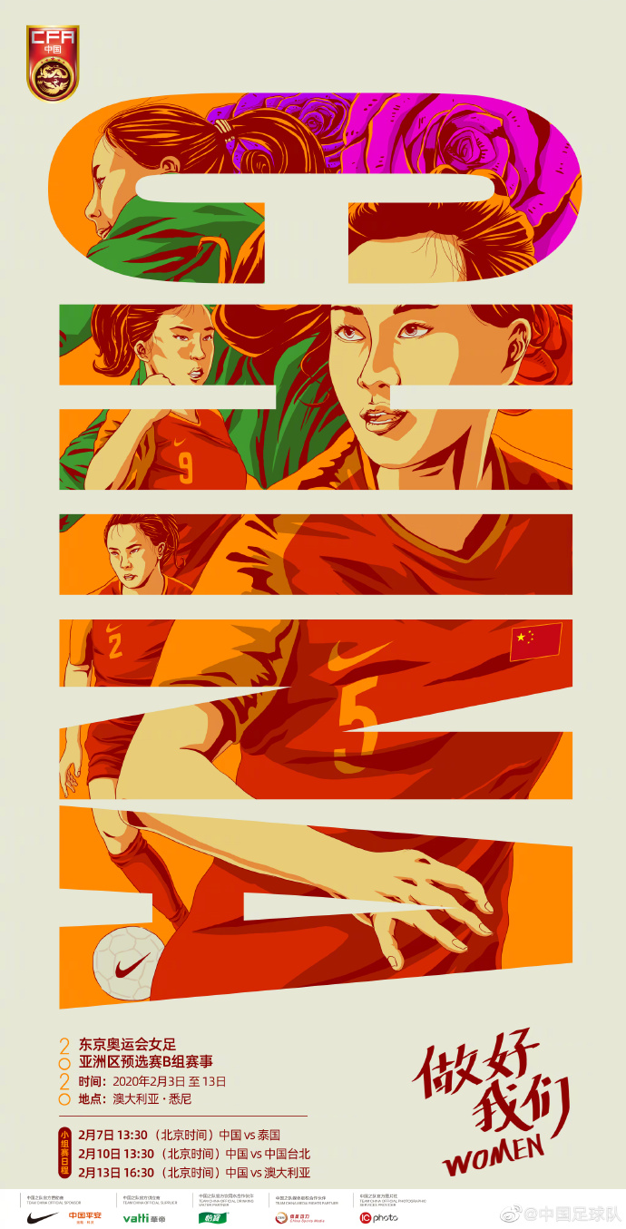 当地时间2月6日,中国国家女子足球队完毕了在布里斯班的酒店隔离期,顺利抵达澳大利亚悉尼,并在Valentine Sports Park进行了赛前练习,备战7日开始的奥预赛B组小组赛最终阶段的比赛。赛前,女足官方发布作战海报。