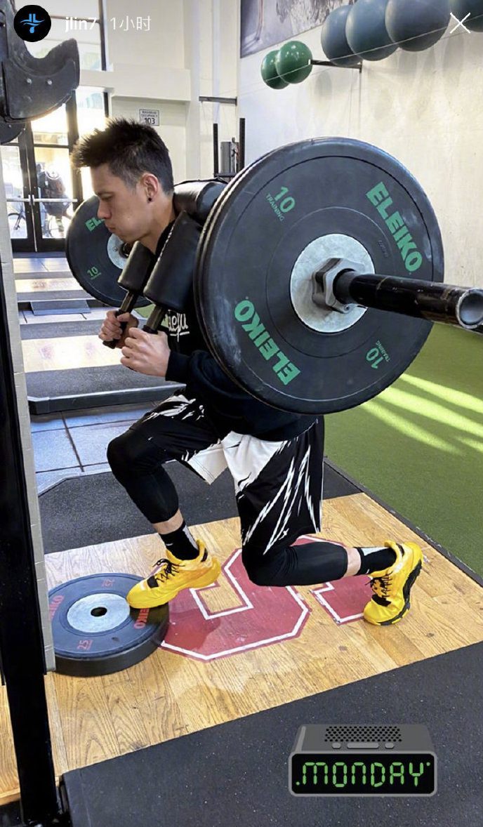 林书豪晒出了自己在健身房中进行力量练习的相片,并配文:“全天,每一天,期待休息日,哈哈哈。”他还晒出自己重点进行膝盖练习的视频,林书豪曾因右膝盖髌骨韧带开裂导致赛季报销,林书豪表示:“自从我的右膝受伤之后,加强右腿的爆发力是最重要的一点。”