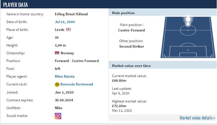 数据网站whoscored对哈兰德的强项和弱项分别进行了评价。其中,哈兰德的完结能力是十分强(very strong),传直塞球、关键传球和头球争顶也是哈兰德的强项。而在弱项方面,除了防卫奉献以外,哈兰德并没有其它的弱项。当然,作为一名尖端前锋,防卫原本就不是哈兰德的首要职责。此外,德国《转会商场》在介绍哈兰德时,认为他的惯用脚是左脚,实际上他的进球也更多的是用左脚,依据计算,到目前为止,哈兰德在德甲的10个进球傍边,其中有8球都是用左脚打进的。