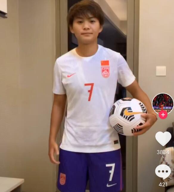 北京时间7月10日,女足国脚王霜在视频社交媒体发布视频,视频中她身穿新赛季的国家队客场球衣,这件球衣白底与紫色暗纹结合,球裤则是很少见的纯紫色。