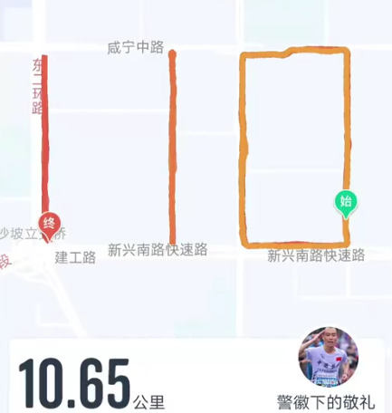 刘元说,自己平常就喜爱跑步,也常常参加马拉松比赛,而10号是第一个归于自己工作的节日,他觉得很高兴,需求有些仪式感来庆祝,于是就想着跑出来一个110的数字来纪念一下。10号早上9点多,刘元从立丰世界附近动身,跑了10.65公里,共用时57分钟,从地图上看,刘元的跑步路线刚好结合了西安方方正正的马路,