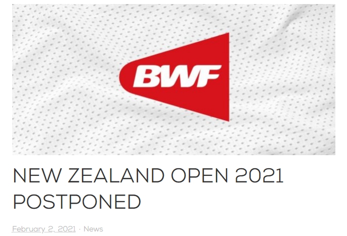 北京时间2月2日,世界羽联官网宣布,原定于今年5月4日-9日举行的新西兰公开赛,受疫情影响被迫宣布推迟,现在办赛日期未定很有可能比赛被推迟到今年下半年。日前也有马来西亚媒体报道,如果未来几周马来西亚确诊病例居高不下,3月底到4月初的两站马来西亚赛,也有被放弃的可能。