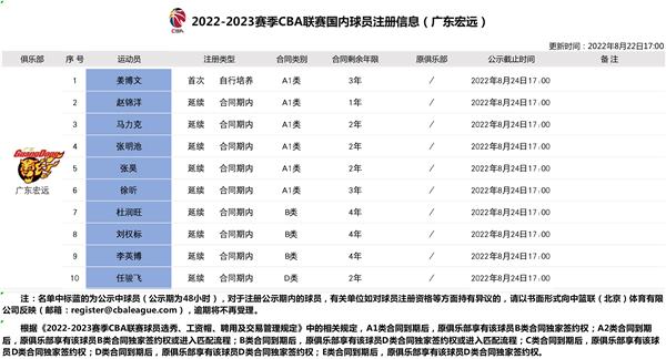 8月22日17点,CBA联盟发布了最新的球员注册名单。公告显现,广东宏远第一批注册球员仅有10名,其间任骏飞D类顶薪合同剩下2年。