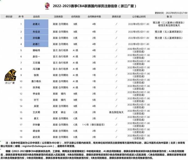 8月31日消息,CBA官网更新了2022-2023赛季CBA联赛国内球员注册信息,广厦完成注册19人。
