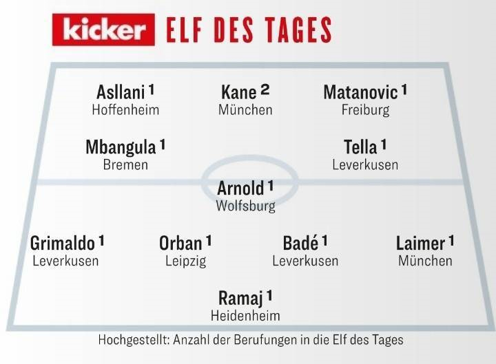 九月十五日,德甲第三轮结束,《踢球者》公布了本轮德甲最佳阵容。