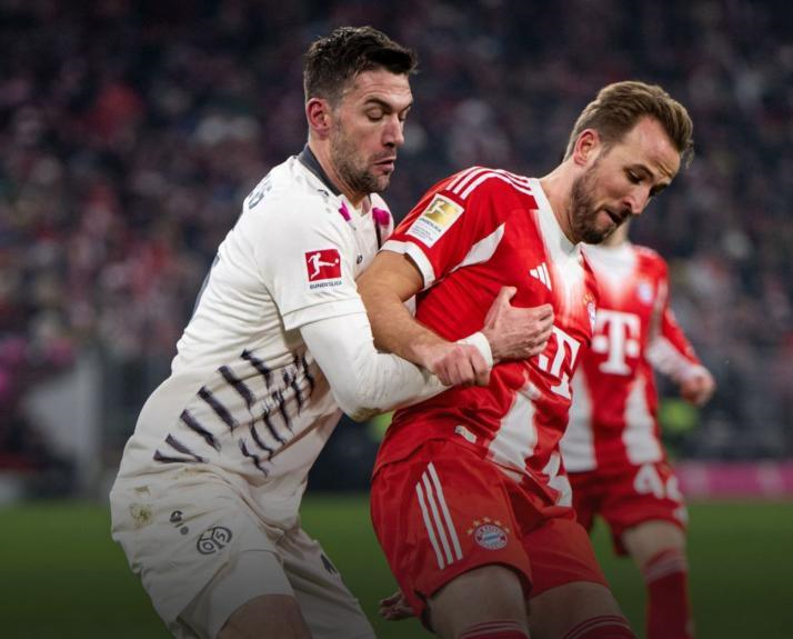 比赛开始后,准备在安联球场坚守的五名后卫美因茨率先在第16分钟制造了一场威胁性的进攻。李在城的头球攻击门框被弹出,然后被诺伊尔没收。4分钟后,凯恩也回敬了对手的头球进攻,美因茨门将勇敢地从这个角度托出了横梁。