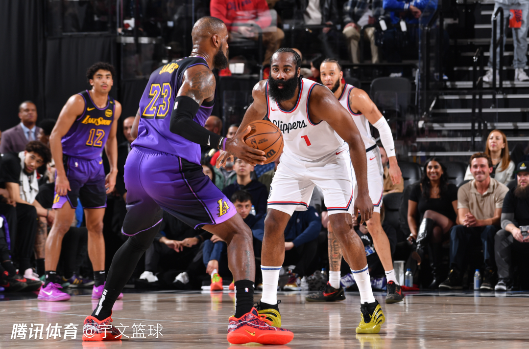 洛杉矶德比快船大胜湖人,詹姆斯25+11末节8中1,哈登超大O升总得分榜第14名。