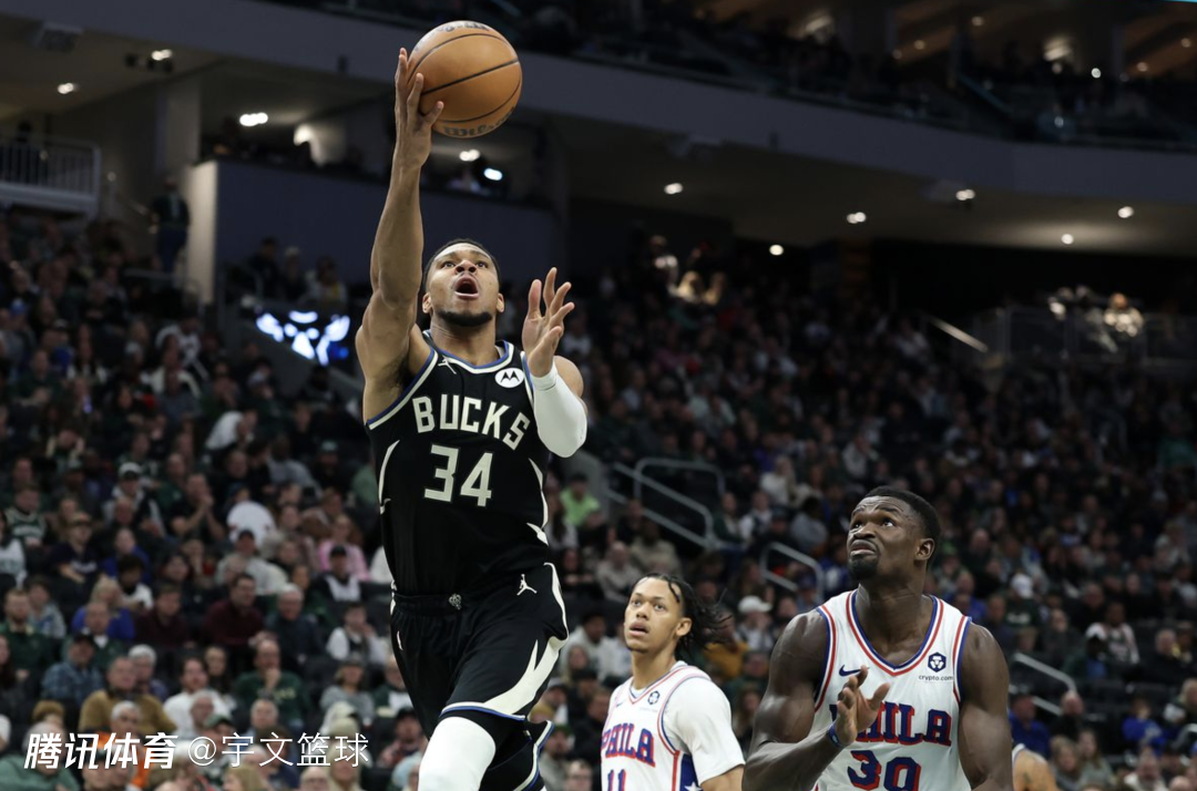 恩比德和保罗-乔治持续缺阵,字母哥爆砍34+15,雄鹿大胜送76人6连败。