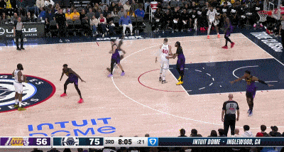 易边再战,八村垒命中三分,哈登、祖巴茨、鲍威尔、琼斯联手打出8-0!八村垒投篮再中后,琼斯三分命中拉开到21分领先。暂停之后,詹姆斯和莱昂纳德先后得手,詹姆斯扣篮命中,戴维斯两罚全中缩小到17分。莱昂纳德连得4分,哈登三分再中,快船队拉开到24分。克内克特两罚全中,祖巴茨和科菲连续得分继续拉开领先优势。戴维斯连得4分,詹姆斯和海斯连续得手,克内克特命中三分,湖人队一波11-0缩小到15分。哈登两罚全中后,詹姆斯上篮命中,快船队92-77领先湖人队结束前三节比赛。