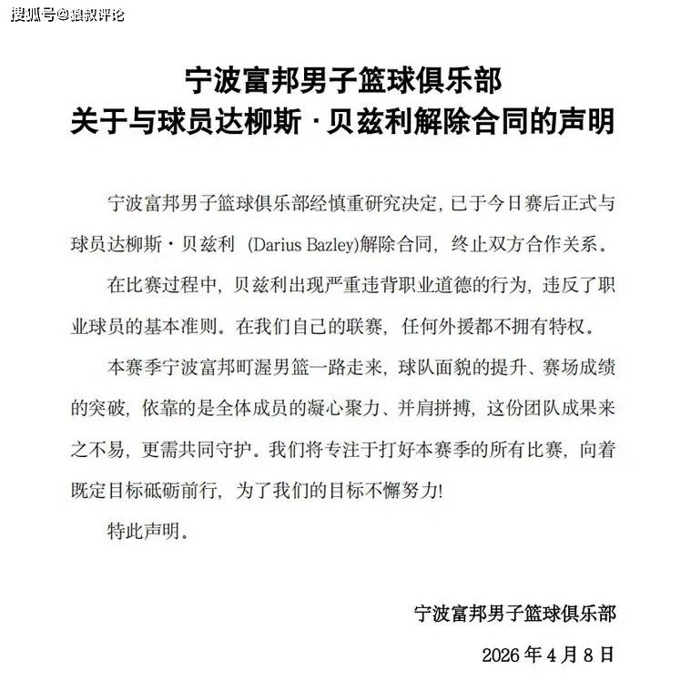 在比赛的第一节结束时,宁波外援贝兹利连续与队友发生内斗,被迫替换下场,宁波在比赛结束后直接正式裁掉了贝兹利。