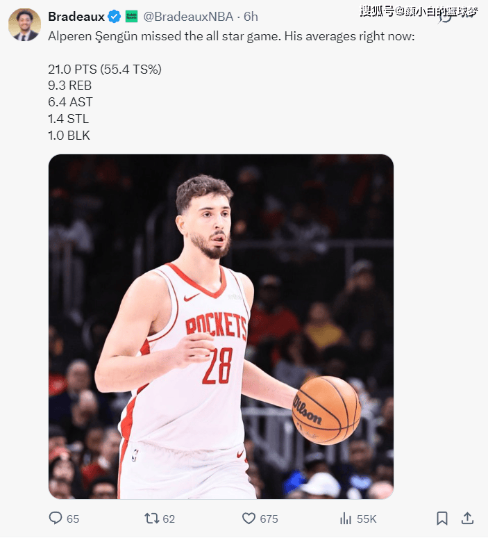 火记Bradeaux写道,杜兰特生涯第16次进入全明星,杜兰特全明星次数历史第四,仅次于詹姆斯22次,贾巴尔19次,科比18次。
